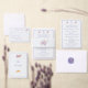 Design front features the initials of bride and groom intertwined and displayed at top. The images of the Sacred and Immaculate Hearts of Jesus and Mary are pictured on either side. Just below, your text is featured in the traditional format for a Catholic wedding invitation and displayed against an off-white background. Entire design is framed with a thin, elegant, periwinkle-purple border.