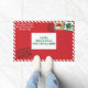 Deze Personalize Christmas-deurmat is een kerstbrief die u kunt personaliseren met uw familienaam in het retouradresgebied en u kunt uw eigen kerstadres of Merry Christmas-bericht maken in het verzendadresgebied. dit ontwerp is een gewaagde rode envelop met gestreepte randen van suikerriet, twee kerstpostzegels en postmerken. Een super schattige kerstdeurmat om het kerstseizoen te vieren met feestelijke feestvreugde.