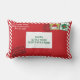 Dit Personaliseer kerstkussen is een kerstbrief die u kunt personaliseren met uw familienaam in het gebied van het retouradres en u kunt uw eigen kerstadres of vrolijk kerstbericht maken in het gebied van het verzendadres. dit ontwerp is een vetgedrukte rode envelop met gestreepte randen van suikerriet, twee kerstpostzegels en postmerken. Een super schattig kerstkussen om het kerstseizoen te vieren met feestelijke feestvreugde.