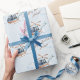 - Pillow 2: A gentle repeat pattern of mini helicopters and clouds on a light blue background, with the name centered in matching gold script.