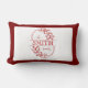 Elevate your home decor with this elegant and timeless personalized family name throw pillow. Featuring a chic deep red and white color palette, this design showcases a delicate botanical wreath surrounding your custom surname in a sophisticated serif font.