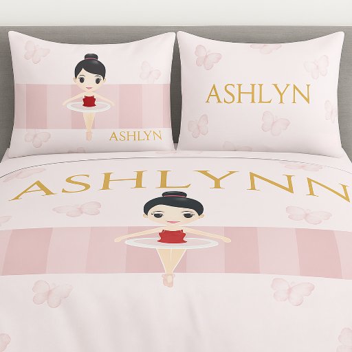 Perfect for ballet-themed bedrooms, personalized gifts, or magical nursery setups, this set blends charm, comfort, and individuality. Pair it with our matching duvet cover for a complete ballerina dreamscape.