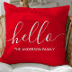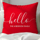 Ontvang gasten met een warme en stijlvolle aanraking met behulp van deze gepersonaliseerde sierkussen. Met een moderne "hallo" in script en een aanpasbare familienaam, completeert dit rode kussen verschillende interieurstijlen. Ideaal om een persoonlijke noot toe te voegen aan uw woonkamer of slaapkamer.