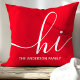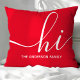 Welkom gasten met een warme en stijlvolle aanraking met behulp van deze gepersonaliseerde sierkussen. Met een modern script "hoi" en aanpasbare familienaam, completeert dit rode kussen verschillende stijlen voor thuisdecoratie. Perfect voor het toevoegen van een persoonlijke touch aan uw woonkamer of slaapkamer.