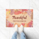 Deze rustieke deurmat is versierd met een waterverf van bladeren in de prachtige kleuren van herfst en het woord "Dankbaar" in stijlvolle typografie. Gemakkelijk aan te passen. Originele Waterverf © Michele Davies.