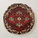 Oosters tapijt ontwerp in donkerrood en crèmekleur - een antiek afbeelding is afgedrukt op dit ronde kussen - een illustratie uit een antiek boek - het werd bewerkt en aangebracht op verschillende items door Alma Wad.