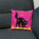 Pet Black Cat op roze wit geel Schattige modern Kussen