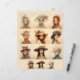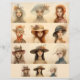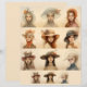 Negen vrouwen figuren zijn in een 3x3 raster, elk met een eigen, decoratief pet met verschillende versieringen zoals bloemetjes en veren. Hun uitdrukkingen zijn sereen en contemplatief, met zacht gerenderde kenmerken die een dromerige kwaliteit overbrengen.