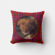 Monogrammed pet pillow with two images and two designs. Plaid on the front with black leather look on the back.