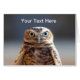 Cette photo montre une jeune chouette en train de crever en vous regardant droit. Ces petits hiboux se trouvent dans les prairies, les terres de parcours, les déserts ou d'autres zones sèches ouvertes à faible végétation et se trouvent dans des terriers souterrains.