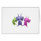 Trois petits martiens habillés de vert, rose et bleu