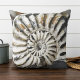 Een elegante natuur inspireerde kussen in neutrale kleuren met een spiraalvormig nautilus fossiel. Prachtig voor een strandhuis of kustverblijf, of ook als je op zoek bent naar een industrieel design interior.