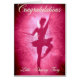Félicitations sur réussir l'examen de danse. Essentiellement une carte de childs. Principalement rose en couleurs.