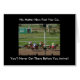 Carte de voeux amusante. Légende : "Peu importe la vitesse à laquelle vous allez, vous n'y arriverez jamais avant votre arrivée ! Photo de Wanda Mascari
