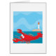 Un grand homard rouge de style de bande dessinée. L'arrière - plan est l'océan avec un phare sur l'horizon. Customisez cet article avec votre nom ou un commentaire pour le rendre unique.