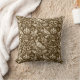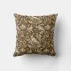 Drog kussen in een William Morris, Art Nouveau wallpaper design of fazants and hares set by leaves, vines and bloemen - beige op een chocoladebruine achtergrond