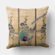 Een prachtige collage van Aziatische vintescreen kunstschilderij van Morning Glory Flower Planten met grassen, en Pheasant Birds, met prachtige blauwgroen groene bladeren, staat op dit Sierkussen. Afbeelding is openbaar domein vanwege vervallen auteursrechten. Collage is van mij.