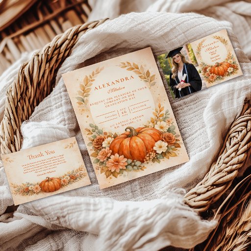 Photo Rustic Pumpkin Floral Fall Graduation Aankondiging