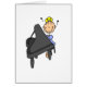 Een blonde pianospeelster op een aanpasbare kaart met een aanpasbare stick.