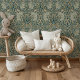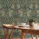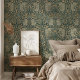 Verbeter uw huis met de tijdloze elegantie van dit behang, geïnspireerd door de prachtige design van William Morris. Het ingewikkelde patroon heeft majestueuze pimpernel bloemen en delicate bloesems verweven met weelderige groene bladeren en wijnstokken, geplaatst tegen een rijke, diepe blauwgroen achtergrond. Dit geavanceerde ontwerp toont een harmonieuze mix van zacht pastelgroen, geel bord en gedempte gouden tinten, waardoor elke kamer een vleugje klassieke verfijning en natuurlijke schoonheid krijgt. Perfect voor het creëren van een serene en elegante sfeer, dit behang combineert naadloos traditionele charme met hedendaagse stijl.