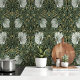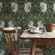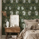 Versier je muren met de tijdloze elegantie van dit behang, geïnspireerd op de iconische design van William Morris. Het ingewikkelde patroon heeft majestueuze witte pimpernel (irissen) en delicate gele bloesems verweven met weelderige groene bladeren en wijnstokken, geplaatst tegen een diepe, rijke zwarte achtergrond. Dit prachtige ontwerp brengt een vleugje klassieke verfijning en natuurlijke schoonheid in elke kamer. De harmonieuze mix van ivoor, bleek geel, olijfgroen en donkergroen tinten maakt dit behang een perfecte keuze voor het creëren van een serene en elegante sfeer in uw huis.