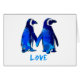 les pingouins bleus tenant des mains indique le "AMOUR"
