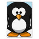 Close-up cartoon pinguïn tegen eenvoudige sneeuwachtige achtergrond.