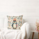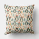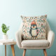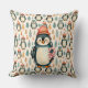 Een kerstkussen met schattige grillige pinguïns, snoepstokken en pijnbomen in baksteenrood, goud en turquoise.