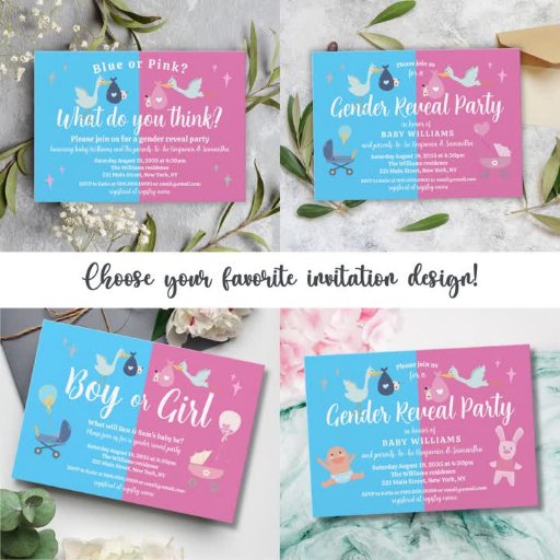 Pink Blue Modern Genre Revela Party Invitation