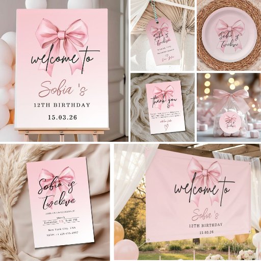 🎀 Pink Bow 12th Birthday Party Welcome Banner