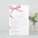 Pink Bow "Who Knows Mommy Best" Game – Voeg wat plezier toe aan je baby shower met deze charmante spelkaart met een delicaat blush roze strik ontwerp. Deze "Who Knows Mommy Best" -game is perfect voor het boeien van gasten en het vieren van de mama-to-be in stijl. Met een elegant script en vrouwelijke accenten is deze spelkaart een mooie aanvulling op elk baby shower-thema, waardoor het een gedenkwaardige aandenken is voor de moeder en haar geliefden. *** Voer H121 in de zoekopdracht in de winkel in om alle overeenkomende items te vinden *** Of bezoek ons Pink Bow-Collectie. *** Dit hoogwaardige ontwerp is gemakkelijk aan te passen aan uw douchekleuren, stijlen en thema. Klik voor verdere aanpassingen op de link Bewerken met de ontwerptool en gebruik onze ontwerptool om deze sjabloon te wijzigen. Neem contact met mij op als u hulp nodig hebt of overeenkomende objecten nodig hebt.