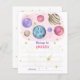WATERVERF Magical Galaxy buitenruimte thema verjaardagsuitnodiging. Sterren en planeten in roze, paarse, gouden kleuren.