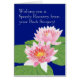 Une jolie carte de voeux Get Well from Back Surgery, avec deux nénuphars roses et des lilypads sur un arrière - plan bleu profond, d'une aquarelle peinte à la main par Judy Adamson. Vous pouvez personnaliser le message intérieur de cette carte si vous le souhaitez.