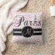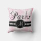 Dit Soft Pink and White Damask Pattern American MoJo Sierkussen met gepersonaliseerde monogram, het woord Parijs met de Eiffeltoren en een lijn witte diamanten op een zwarte band zullen er geweldig uitzien in je slaapkamer of woonkamer als een accentuop. Monogram Galerij Gifts© Elke Clarke Design ©