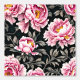 Een prachtig naadloos herhalend patroon met grote donkerroze en lichtroze pioenbloemen in volle bloei met gouden mosterdgele meeldraden op een zwarte achtergrond met donkergroene bladeren rond de bloesems. Dit gedurfde en elegante op weide geïnspireerde ontwerp heeft een tijdloze en elegante zomer / lente-uitstraling. Transformeer elke kamer in een statige en majestueuze tuinomgeving met dit ontwerp geschikt voor elke grote ruimte, of het nu een woonkamer, badkamer of slaapkamer is. Ideaal voor landhuizen, Engelse en Franse huisjes, huizen en zakelijke omgevingen.