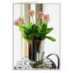 Ces cartes, t-shirts et autres objets sont ornés d'une photo d'un bouquet de tulipes roses dans un lanceur métallique brillant.