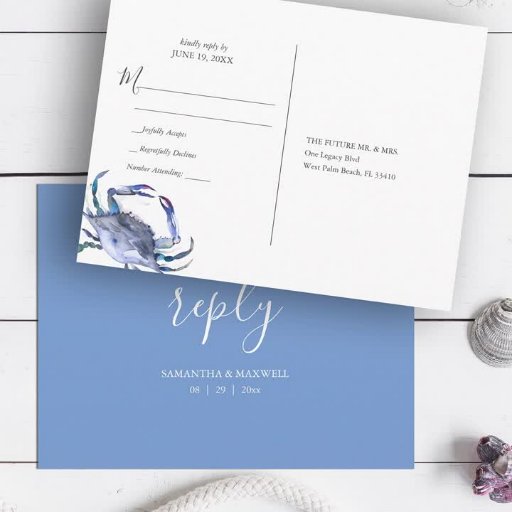 Blue Watercolor Crab Beach Wedding ThemesConçu par Victoria Grigaliunas