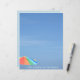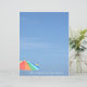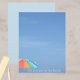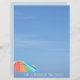 Cette papeterie bleue ou papier à gratte-ciel est plage avec un ciel photographique, un parapluie de plage coloré dans le coin inférieur et "La vie est meilleure à la plage" texte personnalisable. Cette image est la photographie originale de bord de mer par JLW_PHOTOGRAPHY.