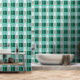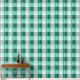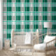 Plaid effect fris groen, blauwgroen, grijs en wit behang
