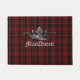 Revendiquez votre château avec ce tapis de porte classique noir et rouge beau de motif de tartan de Macqueen de clan. Les graphiques d'un vieux style d'étain couronnent, décorent le milieu du tapis, avec le texte gris fait sur commande sous lui, préparent pour personnaliser.