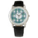 Blauw en groen plaids patroon voor een sport-chique mannen handhorloge.