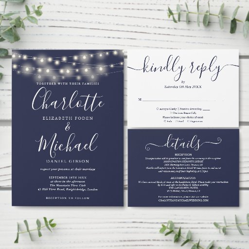 Navy Blue String Lights Signature Script Wedding Conçu par Thisisnotme Designs