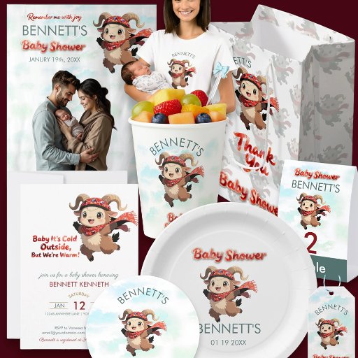 This table card is special for its charming, cartoon ram character set against a soft watercolor cloud background. The ram, dressed in a cozy red scarf and hat, perfectly matches the "Baby It's Cold Outside" winter theme. The tent-fold style clearly displays the large table number, making it a whimsical and functional decoration for guiding guests at a winter baby shower.
