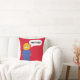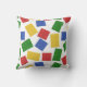 Creëer Een leuk gepersonaliseerd cadeau of een leuk slaapkamerdecor voor je favoriete jonge bouwer met dit kussen. De voorkant toont een afbeelding van een plastic bakstenen figuur in blauw en geel tegen een rode achtergrond met jouw naam in een witte tekstballon. De achterkant heeft een patroon van plastic speelgoed bouwstenen blokken in rood, geel, blauw en groen.