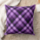 Un oreiller de 20 po x 20 po avec un beau motif en plaid en diagonale en violet de prune.