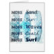 Empreinte amusante : plus de plage, de soleil, de sable, de vagues et de surf. Tons de bleu avec trio de surplanches en arrière - plan.