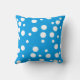 Les pois blancs de différentes tailles sont imprimés sur le bleu clair d'un côté du coussin, et sur une teinte plus foncée de bleu à l'envers.