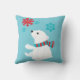 Deze kerstfeestdag heeft een blauwe achtergrond met een wit polair beer met een blauwe en rode sjaal met een sneeuwvlokballon.