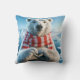 Een polair beer draagt een rode en witte gestreepte sjaal die met zijn poten een hartvorm vormt