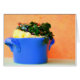 Un beau pot de cobalt tient le polenta crémeux et les verts sautés profond-colorés.